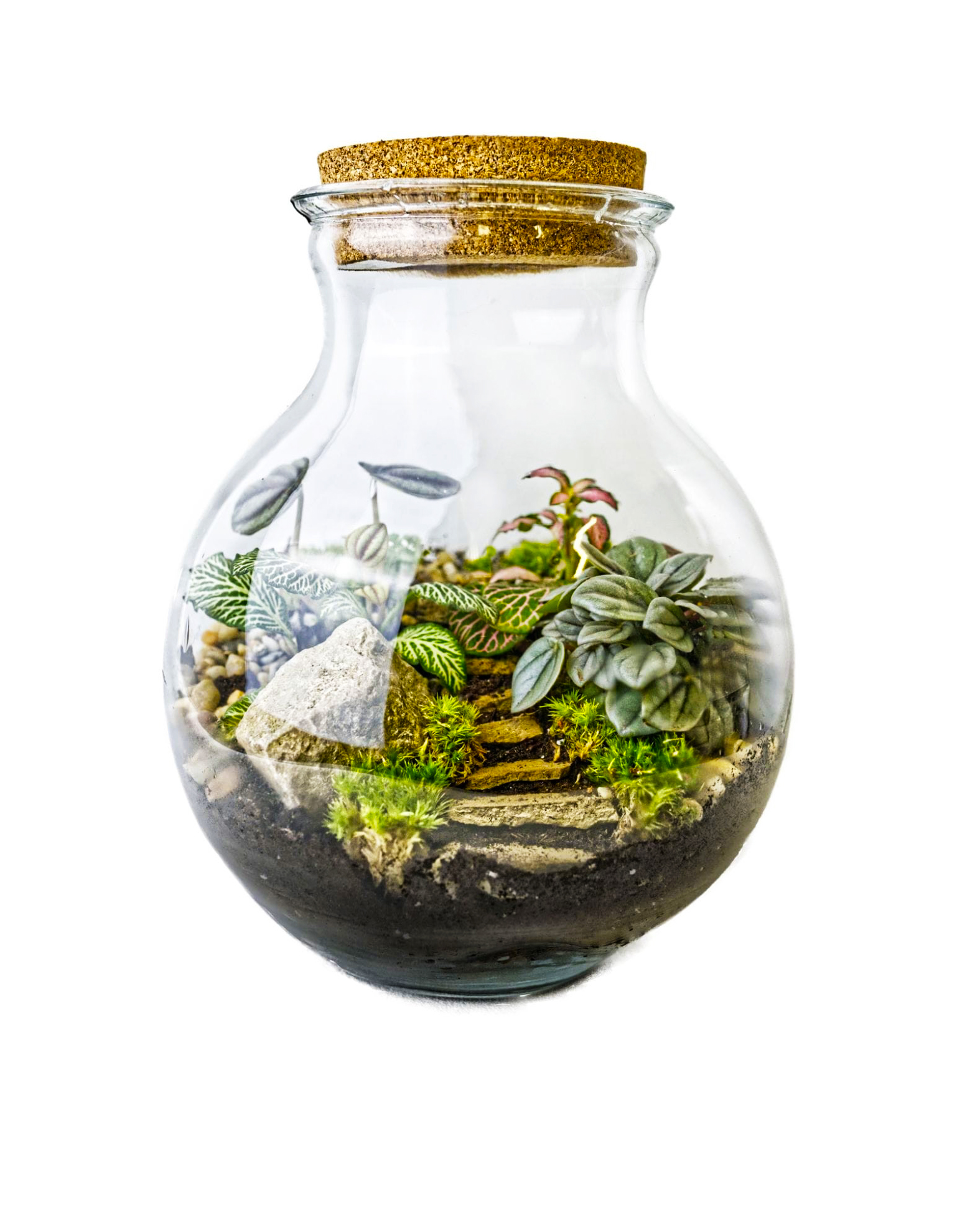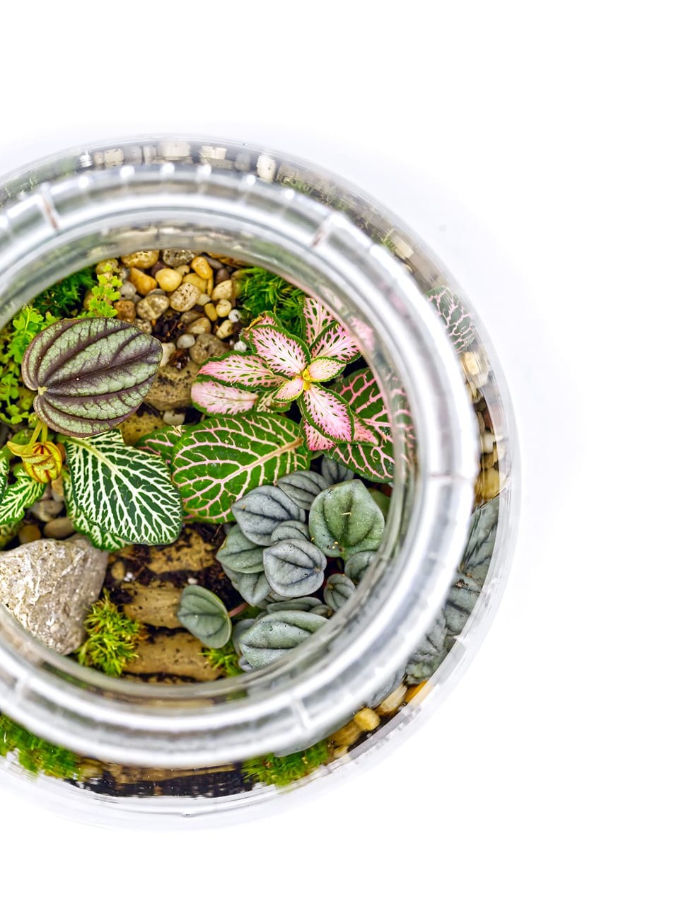 Zahvaljujući pažljivo složenoj kompoziciji, terarij izgleda prekrasno iz svakog kuta – bilo na stolu, polici ili kao središnji ukras u vašem domu ili uredu.